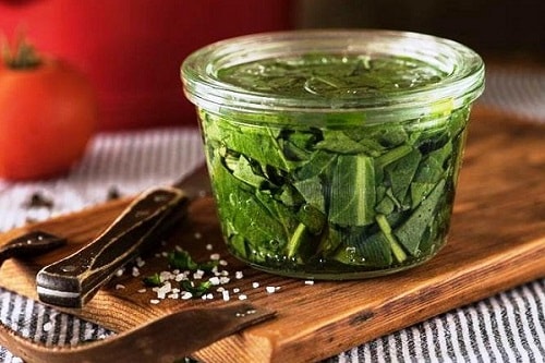 Це також дуже простий варіант консервації листя щавлю на зиму. Оскільки в рослині повно своєї натуральної кислоти, воно чудово зберігається без додаткових добавок у вигляді солі і теплової обробки.