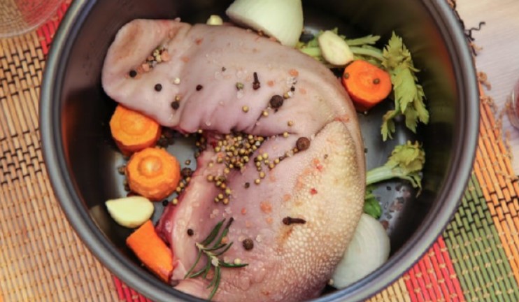 Щоб яловичий язик проварился, його треба готувати 2-3 години. Мультиварка-скороварка дозволяє значно прискорити процес. За рахунок тиску, температура кипіння перевищує 100 градусів, м’ясо вариться швидше. Крім того, ефект термоса, він же ефект російської печі, який створюється корпусом приладу навколо його хащі, дозволяє зварити продукти з різним часом приготування в один прийом. Наприклад, м’ясо розвариться, а овочі будуть готові, але не перетворяться на кашу. У випадку з яловичим субпродуктом, скороварка дозволяє отримати максимально насичений смак і ніжну консистенцію.