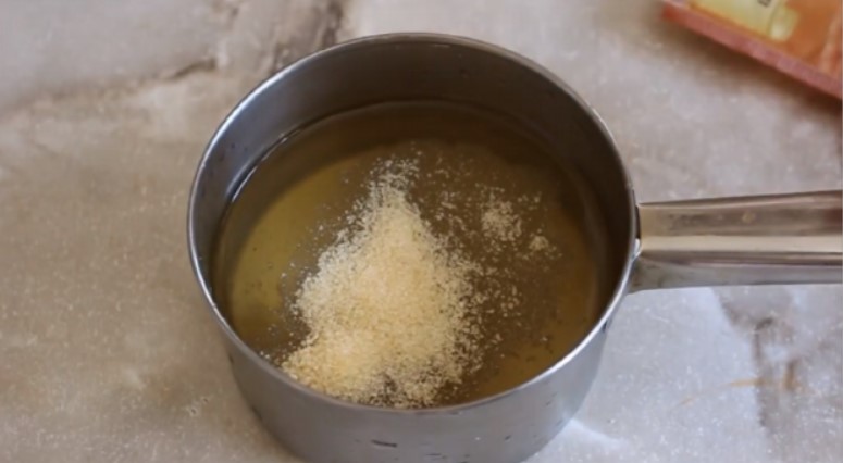 1. Якщо желатин звичайний, не швидкодіючий і не листової, то його треба замочити в холодній воді (приблизно 100 мл) на 40 хвилин.