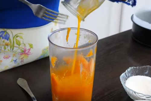 Складіть охолоджену гарбуз в чашу блендера. Додайте половину від заявленого обсягу манки. Засипте також половину цукрового піску. Пробийте вміст в пюре.