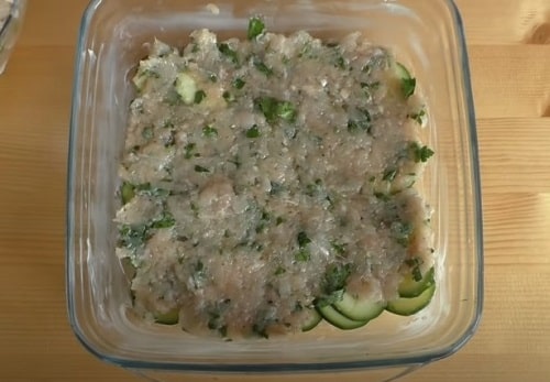 Викладіть тертий кабачок, далі зробіть шар з залишився фаршу.
