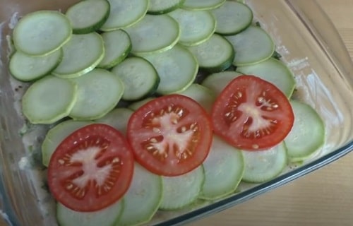 Перед вами чудове літнє блюдо – легке, смачне і гарне. Кількість кабачків залежить від їх величини. Запіканка буде багатошарової, в кілька поверхів.