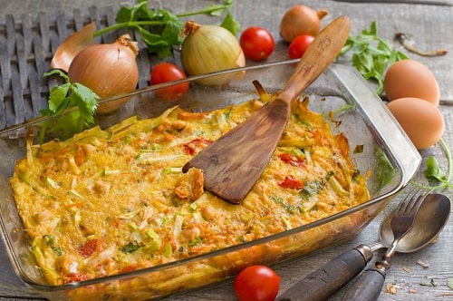 Залийте блюдо, помістіть на середній рівень духовки, розігрітій до 180 о С. Час запікання – 30-35 хвилин.