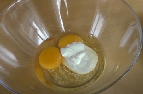 У невеликій мисці збийте яйця зі сметаною і дрібкою солі з перцем. Це стане заливкою запіканки.