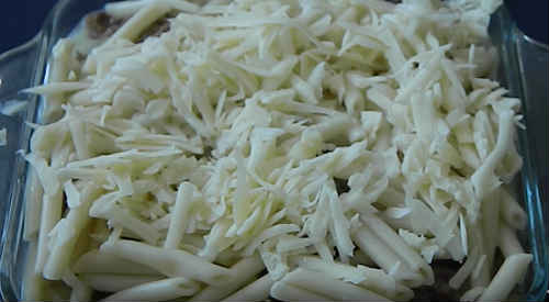 Останній крок: посипте запіканку сиром і поставте в духовку. Блюдо запікається швидко, всього 30 хвилин. Шафа розігрівайте до 200 про С.