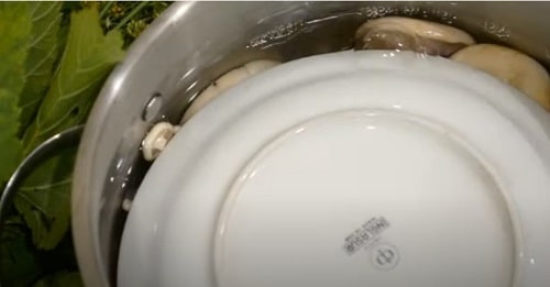 - Накрийте кропом, притисніть тарілкою, зверху поставте вантаж.