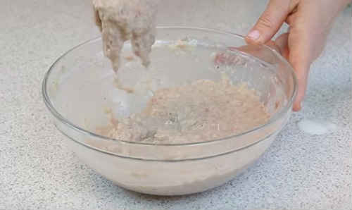 - Потім продовжуйте вимішувати, підсипаючи ще борошна за необхідності. Можливо, у вас піде не три склянки борошна, а більше. Дивіться по ситуації, тісто має перестати прилипати до стінок. Залиште масу настоюватися на одну годину.