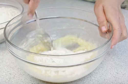 Поступово додайте борошно. Відразу все не засинайте, кладіть малими порціями, кожну старанно вимішуючи.