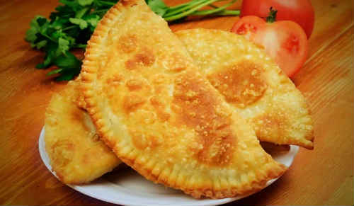 - Далі все, як завжди: розкачати, наріжте на заготовки. Покладіть в середину начинку і сформуйте чебурек. Посмажте і бігом за стіл.