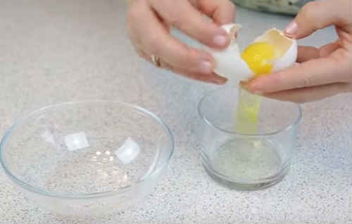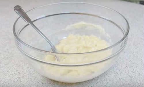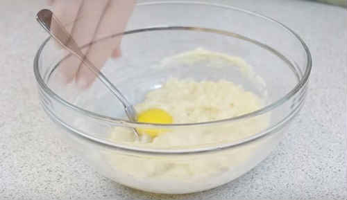 - Зніміть з конфорки, дайте ще трохи охолонути. Вбийте яйце, знову активно перемішайте вміст. Не лякайтеся, якщо спочатку маса розпадеться, незабаром вона знову збереться в ком.