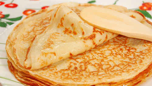 - Спечіть млинчики, складіть гіркою на блюдо, промажте маслом, якщо не тримайте пост.