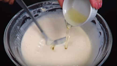 Влийте соняшникову олію, знову попрацюйте віночком.