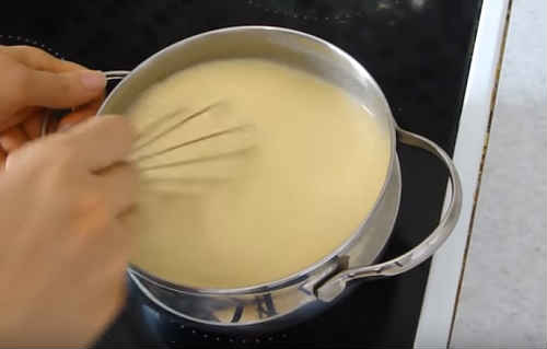Поставте каструлю на плиту. Налаштуйте вогню до середнього, почніть прогрівати суміш. Не припиняючи ні на секунду помішувати масу, доведіть до закипання.