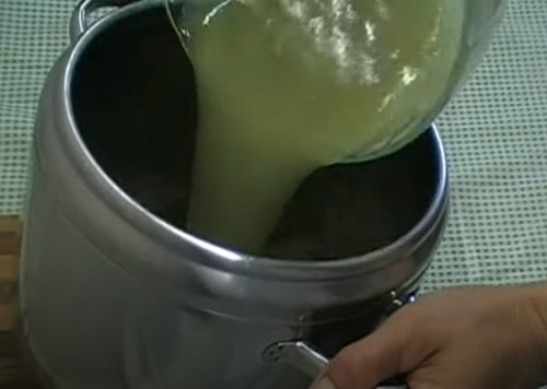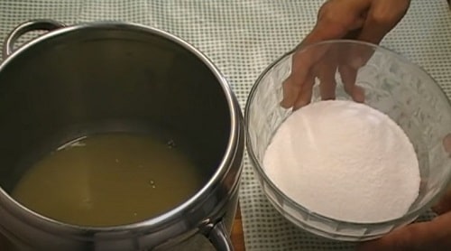 - Зважте кількість отриманого соку. Перелийте його в каструлю. Додайте необхідну кількість цукрового піску, як зазначено в складі рецепта.