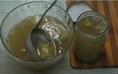 Ласощі вийде дуже густим, особливо, якщо візьмете саму стиглу ягідку, в ній вже накопичено велику кількість природного пектину. По виду, желе стане нагадувати мед кольору бурштину.