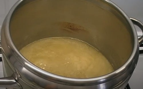 - Прогрівайте вміст на середньому вогні, поки воно не закипить. Швидко зніміть піну.