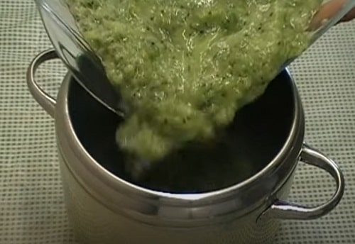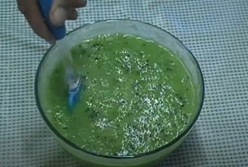 - Не зливаючи відвару пробийте вміст блендером, перетворивши в кашку.
