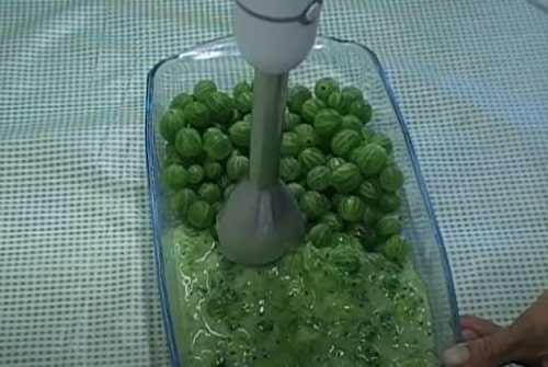 - Підготуйте до роботи плоди агрусу, складіть в чашу. Подрібніть блендером до стану пюре.