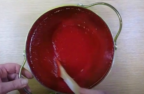 - Поверніть масу в каструлю. знову доведіть до закипання. Відразу розкласти по банках, укупорьте під кришку. Остудіть звичайним способом і заберіть в холод на зимове зберігання.
