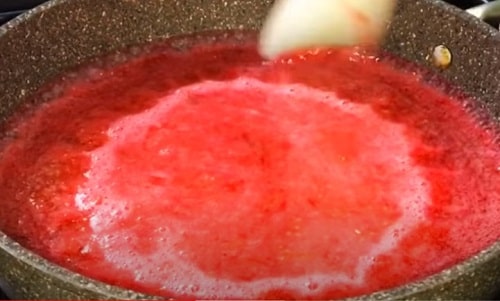 - Через 5 хвилин після закипання желе, вимкніть конфорку.