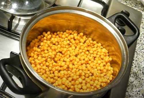 - Підготуйте обліпиху, перебравши її, старанно промивши, відправте в каструлю. На невеликому вогні доведіть до закипання. На самому тихому вогні проваріть, не даючи сильно кипіти, приблизно 10 хвилин.