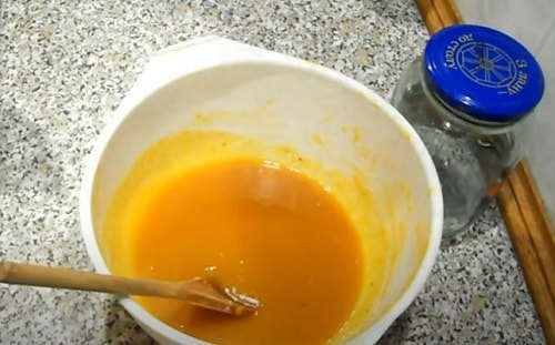 - Додайте мед, перемішайте, розтираючи грудочки меду, якщо не знайшлося рідкого.