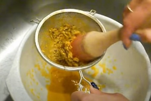 - Пропустіть ягоди через сито, що залишився макуха видаліть, оскільки через гарячої обробки на приготування масла він вже не годиться.