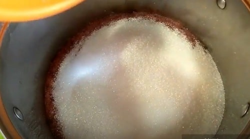 - Обробіть банки паром, укладіть на денце ¼ частина цукру.