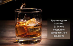 Якщо кількість випитого коньяку досягає 100 м і більше, то у такому випадку буде спостерігатися зворотна дія — підвищення тиску. Процес підвищення ПЕКЛО буде відбуватися дуже швидко. В коньяку присутня велика кількість сивушних масел, які негативно позначаються на нервовій системі, печінці та нирках.