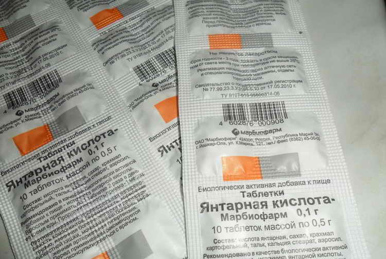 - Після кожної трапези пити бурштинову кислоту в таблетках (в цілому не більше 3-6 шт. на добу).