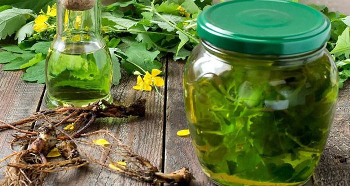 В домашніх умовах можна приготувати масло чистотілу від папілом. Для цього беруть 750 г свіжих рослин. Дозволяється брати як наземну, так і підземну частину (і зелень, і корінь). 500 мл оливкової олії (також підійде мигдальне, не рафінована соняшникова або персикове).