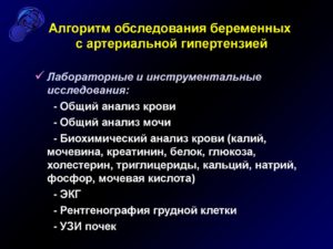 Гіпертонія вагітних вимагає комплексного обстеження. Потрібно встановити фактори ризику підвищення артеріального тиску. При високому артеріальному тиску у вагітних проводяться наступні дослідження: