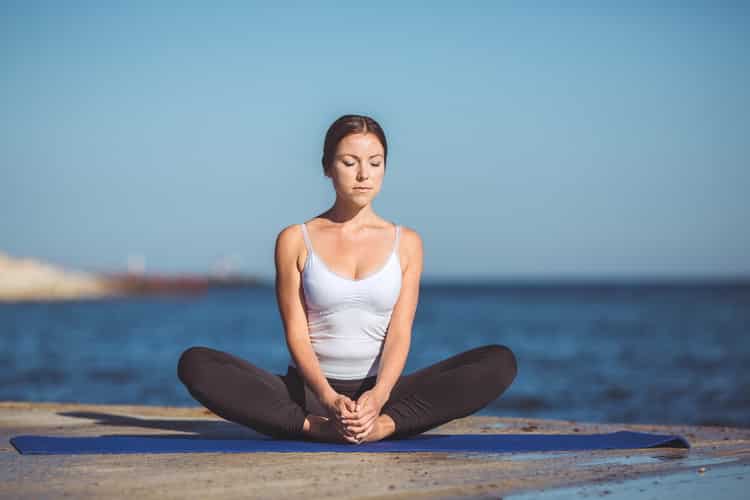 - Лотос. Займіть всім відому позу лотоса. Долоні м’яко покладіть на стегна перед собою так, щоб ліва покрила праву і лежала долонею вгору. Протягом перших 5 хвилин дихайте в звичайному темпі, неглибоко і розмірено, зосередившись на кожному вдиху і видиху. Наступні 5 хвилин – звичайний вдих і більш тривалий глибокий вихід. Наступні – дихайте природно, не замислюючись про глибину своїх вдихів і видихів. Така вправа допомагає зняти втому.