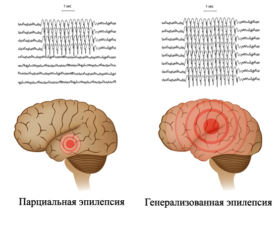 Відомо, що нормальне функціонування мозку порушується, це призводить до судом або періодів незвичайного поведінки, а іноді розвивається припадок з повною втратою свідомості. Передбачити момент настання цих неприємних станів практично неможливо.