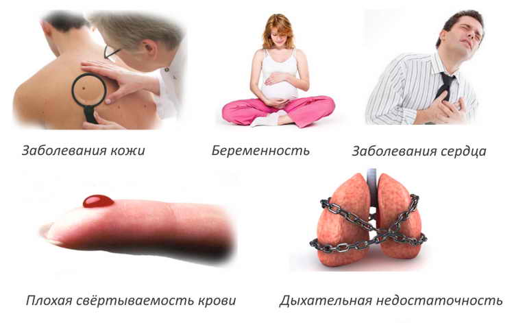 У деяких пацієнтів під час першого сеансу трапляється шок і стан напівнепритомності, блідість, холодний піт і нудота. Зазвичай через 2-3 хвилини все проходить, головне – не панікувати. Часто після вилучення голки випадково зачіпає посудину і виникає невелика кровотеча, але на щастя, його легко зупинити. Одним з основних мінусів є ризик зараження Снідом або гепатитом при неякісної стерилізації інструменту.
