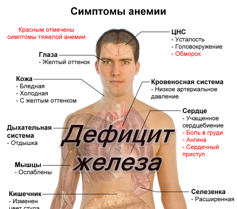 Нестача заліза призводить до порушення синтезу гемоглобіну, мозок відчуває кисневе голодування. Якщо аналіз крові на гемоглобін підтвердить діагноз, потрібно лікування препаратами, насыщающими організм залізом, і дієта. Рекомендується печінка, червоне м’ясо, фрукти, особливо гранати і яблука.