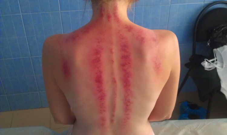 - Насичені червоні сліди, які залишаються особливо після масажу в області спини. Подібна реакція пов’язана з виділенням молочної кислоти і може зберігатися кілька днів, а у деяких пацієнтів плями не проходять і через 1-2 тижні.