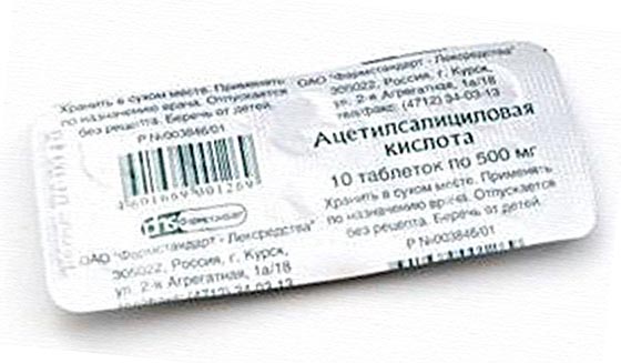 - 7-9 таблеток ацетилсаліцилової кислоти;