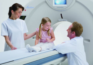 Для обстеження необхідно вибрати одяг без металевих елементів. Також знімаються слуховий апарат і прикраси. Після цього дитину укладають на спеціальний рухомий стіл, який переміститься в трубу томографа. Під час процедури лікар знаходиться в сусідній кімнаті і спілкується з пацієнтом за допомогою радіозв’язку. При діагностиці дітей молодшого віку мамі дозволяють перебувати поруч з ним.