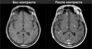 Контрастує препарат дозволяє чітко візуалізувати досліджуваний об’єкт, структуру тканин і клітин ГМ, можна сказати, що він підсвічує певні ділянки головного мозку. МРТ та КТ з контрастом роблять з метою детального дослідження судин голови, для визначення розміру новоутворень в гіпофізі і ГМ, при нейроинфекционных захворюваннях, а також хвороби Паркінсона і Альцгеймера.