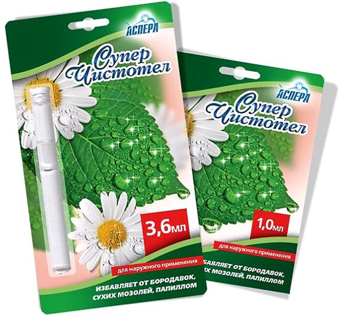 Суперчистотел — препарат на водній основі, призначений для того, щоб позбавити шкіру від неприємних наростів у вигляді бородавок, папілом, мозолів. Придбати засіб можна у будь-якій аптеці: далі використовуємо за наступною схемою: