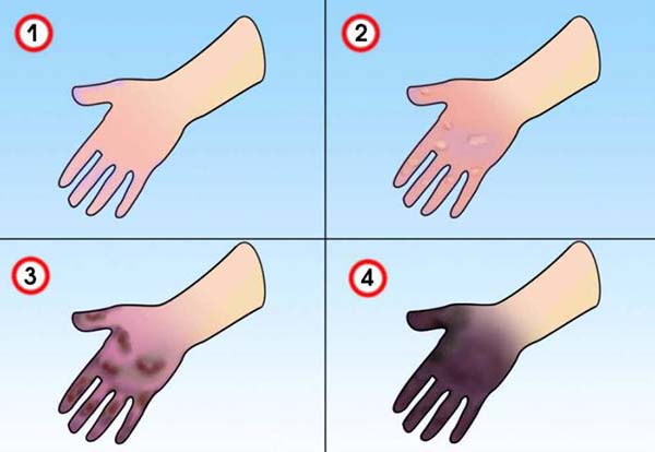 Виділяють наступні види обморожень по поширеності ураження та тяжкості стану.