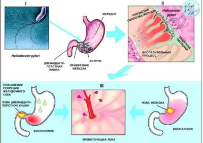 Гострим ускладненням патології визнана проривна виразка, для якої властива сильна біль, миттєво поширюється по ШКТ. Крім цього, підвищується температура тіла. Небезпечними ознаками періоду загострення вважається чорний кал, кровотеча, червона блювання.