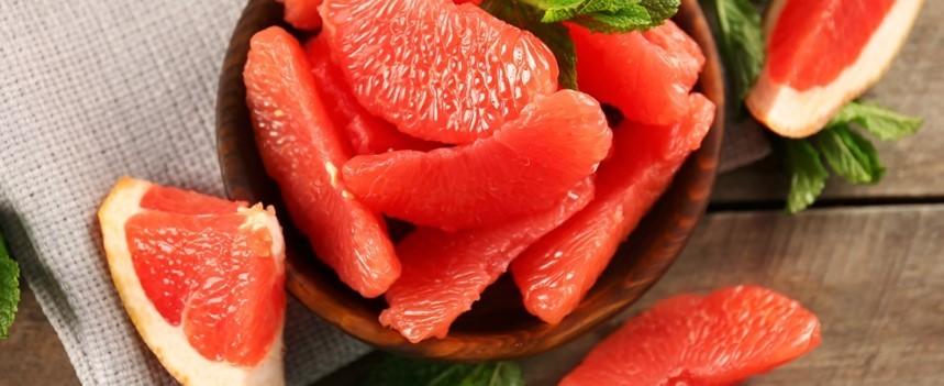 Заморський фрукт з’явився в результаті схрещування плодів помело і апельсина. За своїми корисними якостями він перевершує навіть лимон. Грейпфрут багатий на бета-каротин, провітамін А, вітамін С, біофлавоноїди, ефірні олії, мінеральні солі і антиоксиданти. Регулярне вживання грейпфрутового соку сприяє прискоренню обмінних процесів в організмі і природному очищенню печінки від токсинів. Грейпфрут збільшує вироблення інсуліну і сприяє нормалізації цукру в крові.