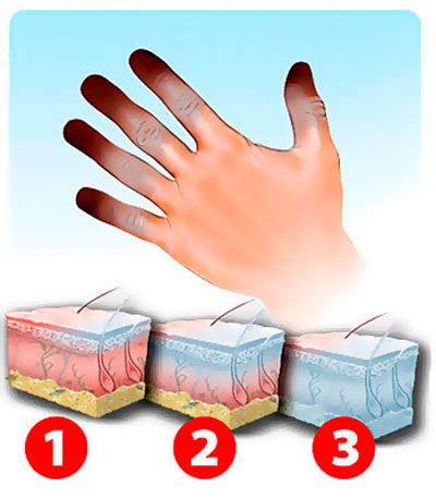 У клінічній практиці виділяють чотири ступені відмороження шкіри, але остаточний діагноз можливо встановити тільки після відігрівання пошкодженого місця. Тому не намагайтеся самостійно оцінити тяжкість положення: після надання першої допомоги як можна швидше зверніться до лікаря.