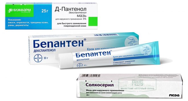 - формування оновленого епітелію стимулюють регенеруючі препарати, що містять ретинол, пантенол, омега-жирні кислоти. Крему на основі цих компонентів допомагають прискореного загоєння шкірних покривів;