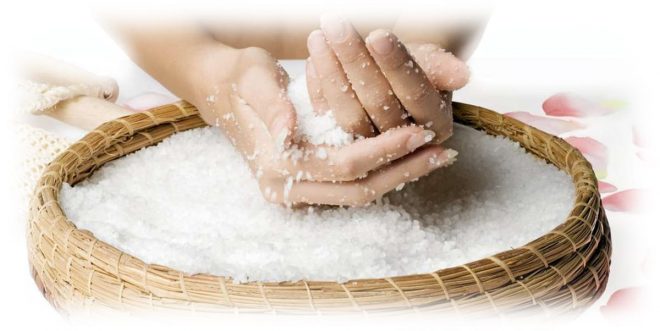 - будучи відмінним абразивом, кристали солі збирають на себе всі біологічні та парфумерні забруднення з шкіри, одночасно відкриваючи доступ молекул кисню, поживних речовин;