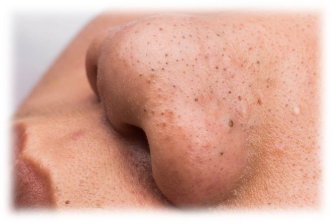 Жирність шкіри і відсутність правильного догляду призводить до утворення комедонов, підшкірних запалень і гнійників різних розмірів (акне). Іноді висипання можуть виглядати як дрібні прищики, почервоніння або білі вугри, причинами яких можуть бути внутрішні захворювання.