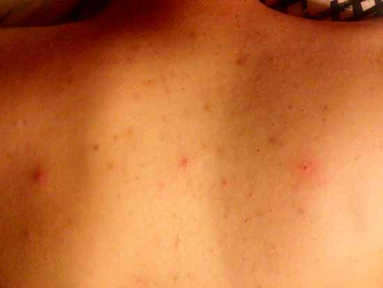 На спині гнійні прищі можуть з’явитися внаслідок носіння неякісного одягу, нестачі вітамінів (гіповітаміноз), алергічної реакції. Вони доставляють сильний дискомфорт і вимагають відмови від хімічних засобів для душу. На шиї та грудної клітки вони з’являтися з тих же причин.