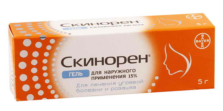 - Скінорен. Мазь з антибактеріальною дією, знімає запалення в короткий термін. Призначається при угревом характер висипки. Аналоги – Скиноклир і Азелик.